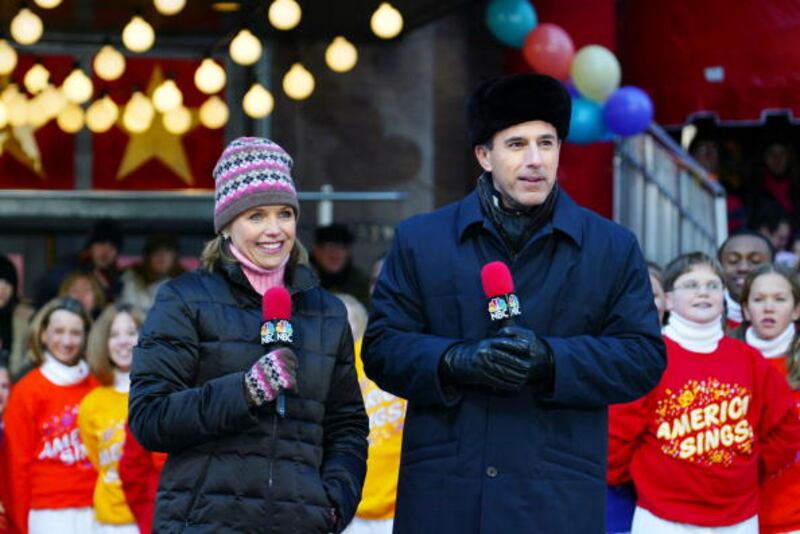 Through the years NEW YORK - NOVEMBER 28: Katie Couric and Matt Lauer from NBC's Today Show appear at the 76th Annual Macy's Thanksgiving Day Parade in Herald Square November 28, 2002 in New York City. (Photo by Matthew Peyton/Getty Images) (Matthew Peyton/Getty Images)
