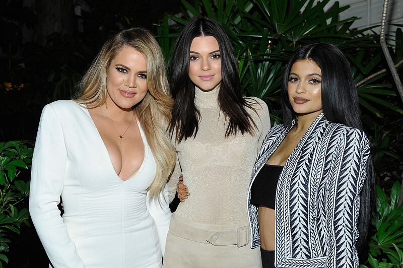 (L-R) TV personalities Khloe Kardashian, Kendall Jenner and Kylie Jenner attend Calvin Klein Jeans' celebration launch of the #mycalvins Denim Series with special guest Kendall Jenner at Chateau Marmont in L.A. on April 23, 2015.