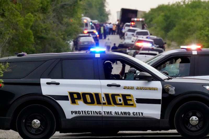San Antonio Police Chief William McManus told the TV station that officers received a call just before 6 p.m. Monday from a person working near the 9600 block of Quintana Road who heard a cry for help. The worker told police he saw several bodies inside a tractor-trailer with its doors partially open as he approached the direction of the cry.