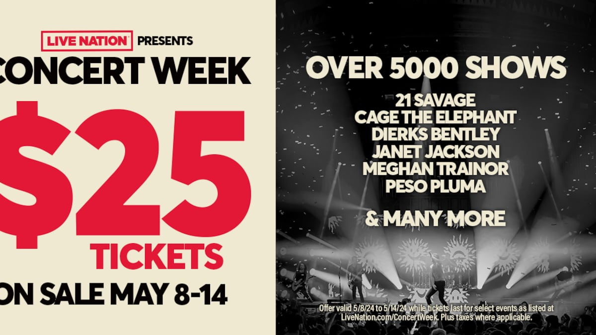 Starting on May 8, Live Nation is holding “Concert Week” where it releases tickets at a steep discount.