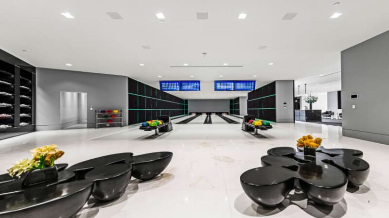 The One The four-lane bowling alley on the home’s subterranean level. (Joe Bryant/Joe Bryant / Aaron Kirman Group)