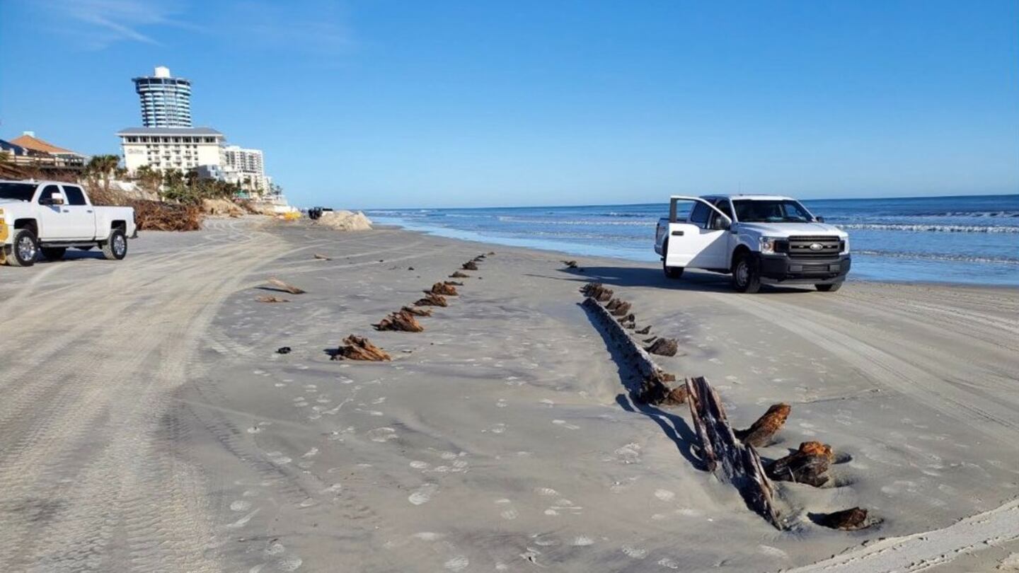 Volusia Beaches shared photos with WFTV’s Mike Springer, which show objects sticking out of the sand on Daytona Beach Shores.
