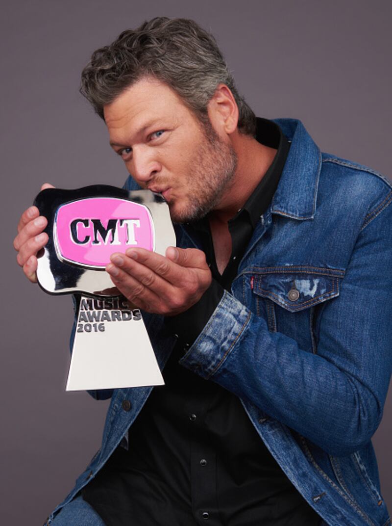 Through the years Blake Shelton poses with CMT Award for CMT Social Superstar in the 2016 CMT Music Awards portrait studio at Bridgestone Arena on June 8, 2016 in Nashville, Tennessee. (Photo by Larry Busacca/Getty Images for People.com) (Larry Busacca)