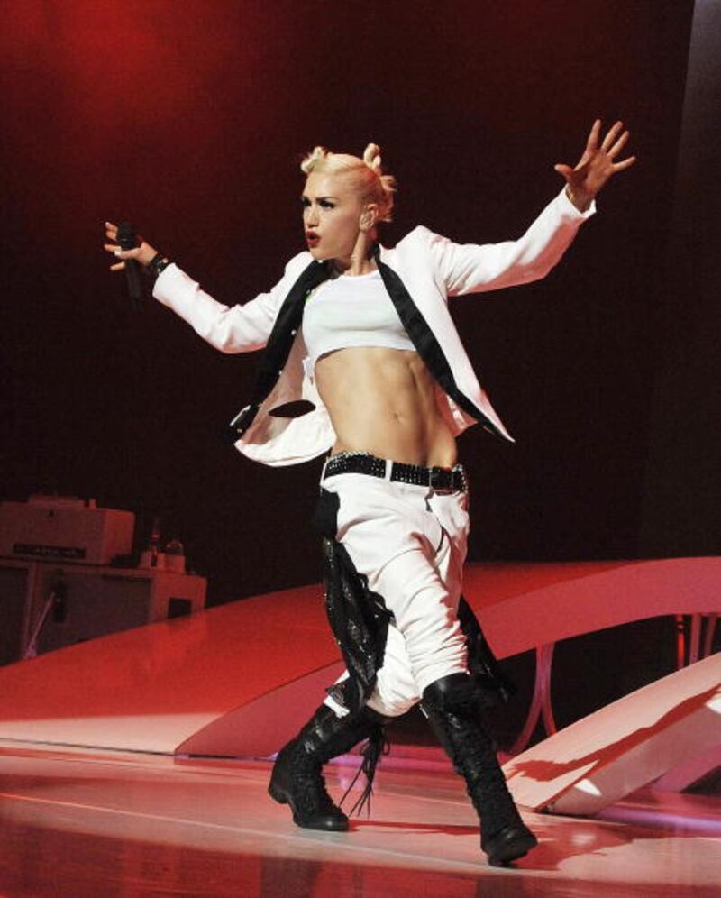 Through the years Singer Gwen Stefani of No Doubt performs during half-time of Super Bowl XXXVII between the Tampa Bay Buccaneers and the Oakland Raiders on January 26, 2003 at Qualcomm Stadium in San Diego, California. (Photo by Donald Miralle/Getty Images) (Donald Miralle/Getty Images)