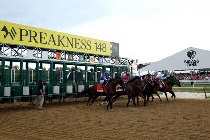 148th Preakness Stakes: The field breaks from the starting gate at the start of the 148th Preakness Stakes at Pimlico Race Course. (Rob Carr/Getty Images)