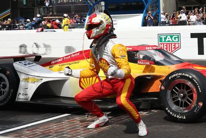 2023 Indy 500: Josef Newgarden, driver of the No. 2 PPG Team Penske Chevrolet, celebrates after winning the 2023 Indianapolis 500. (James Gilbert/Getty Images)