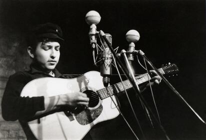 1961 NEW YORK - 1961: Bob Dylan performs at The Bitter End folk club in Greenwich Village in 1961 in New York City, New York. (Photo by Sigmund Goode/Michael Ochs Archive/Getty Images) (Sigmund Goode/Getty Images)