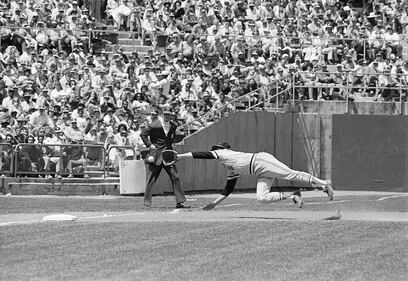 Brooks Robinson: Brooks Robinson, diving to his right, gloves Oakland hitter Gene Tenace's sharp grounder down the base line during a July 1974 game. (Bettmann/Bettmann Archive)