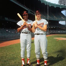 Brooks Robinson: Frank Robinson, left, and Brooks Robinson led the Orioles to four World Series and two Series titles. (Bettmann/Bettmann Archive)