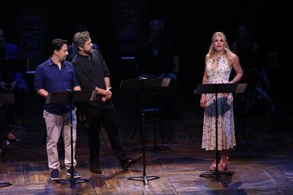 Dawson's Creek Class Reunion NEW YORK, NEW YORK - SEPTEMBER 22: Lin-Manuel Miranda, Joshua Jackson listen as Busy Philipps speaks onstage during the Dawson's Creek Class Reunion at Richard Rodgers Theatre on September 22, 2025 in New York City. (Photo by Cindy Ord/Getty Images for F Cancer) (Cindy Ord/Getty Images for F Cancer)