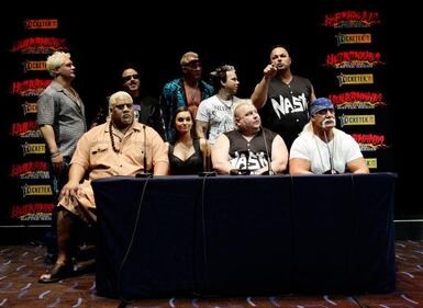 Through the years SYDNEY, AUSTRALIA - NOVEMBER 18: Hulk Hogan and his team mates address the audience during a press conference for 'Hulkamania - Let The Battle Begin' at Star City on November 18, 2009 in Sydney, Australia. (Photo by Brendon Thorne/Getty Images) (Brendon Thorne/Getty Images)