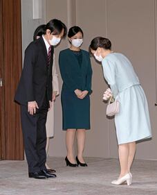 Photos: Japan's Princess Mako marries commoner, loses royal status Japan's Princess Mako, right, bows before her parents Crown Prince Akishino, Crown Princess Kiko and her sister Princess Kako, second from right, before leaving her home in Akasaka Estate in Tokyo Tuesday, Oct. 26, 2021. Mako and her commoner boyfriend Kei Komuro tied the knot Tuesday without wedding celebration in a marriage that has split the public opinion over her would-be mother-in-law’s financial controversy. (Koki Sengoku/Kyodo News via AP)