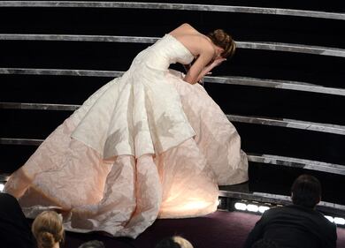 Photos: Jennifer Lawrence through the years 2013: Actress Jennifer Lawrence reacts after winning the Best Actress award for "Silver Linings Playbook" during the Oscars held at the Dolby Theatre on February 24, 2013, in Hollywood, California. (Kevin Winter/Getty Images)