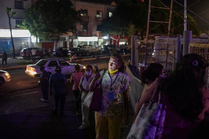 Photos: Magnitude 7 earthquake strikes near Acapulco, Mexico Health workers check their mobile phones as they stand outside Veracruz General Hospital after a strong earthquake, in Veracruz, Mexico, Tuesday, Sept. 7, 2021. (AP Photo/Felix Marquez)