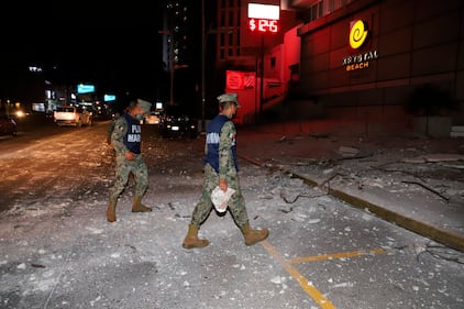 Photos: Magnitude 7 earthquake strikes near Acapulco, Mexico Mexican Marines walk on a street covered by debris after a strong earthquake in Acapulco, Mexico, Tuesday, Sept. 7, 2021. (AP Photo/Bernardino Hernandez)