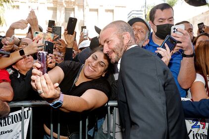 Marc Anthony Honored With Star On Hollywood Walk Of Fame HOLLYWOOD, CALIFORNIA - SEPTEMBER 07: David Beckham poses with fans during the Hollywood Walk of Fame Star Ceremony for Marc Anthony on September 07, 2023 in Hollywood, California. (Photo by Emma McIntyre/Getty Images) (Emma McIntyre/Getty Images)