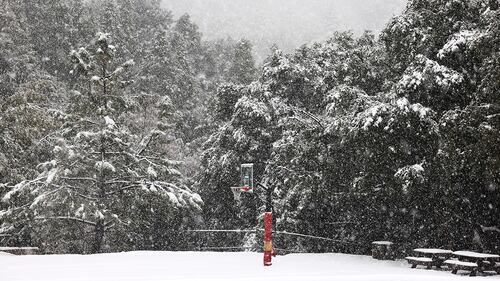 Rare winter storm brings snow to Los Angeles area Snow falls at a school basketball court in Los Angeles County in the San Gabriel Mountains on February 24, 2023 near Mount Baldy, California. A major storm, carrying a rare blizzard warning for parts of Southern California, has begun to deliver heavy snowfall to the mountains with some snowfall expected to reach lower elevations in Los Angeles County. (Mario Tama/Getty Images)