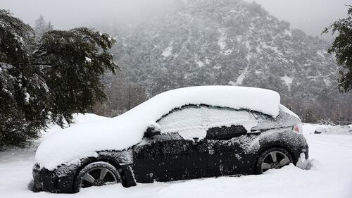 Rare winter storm brings snow to Los Angeles area A vehicle is partially covered in snow, in the San Gabriel Mountains in San Bernardino County near Los Angeles County, on Feb. 24, 2023 in Mount Baldy, California. A major storm, carrying a rare blizzard warning for parts of Southern California, has begun to deliver heavy snowfall to the mountains with some snowfall expected to reach lower elevations in Los Angeles County. (Mario Tama/Getty Images)