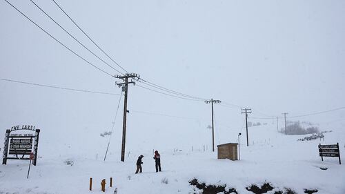 Rare winter storm brings snow to Los Angeles area Patsy Brown (L), who was trying to get home from work, and Abigail Cruz (C), who was trying to get to a wedding, wait on a blocked roadway due to vehicles stuck in the snow in Los Angeles County, in the Sierra Pelona Mountains, on Feb. 25, 2023 in Green Valley, California. A major storm, carrying a rare blizzard warning for parts of Southern California, is delivering heavy snowfall to the mountains with some snowfall expected to reach lower elevations in Los Angeles County. (Mario Tama/Getty Images)