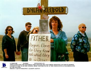 Columbine anniversary Thousands visit the memorial erected for the Columbine shooting victims in Robert Clement Park near the school. There visitors paused at the cross of Dylan Klebold, one of the killers. (Kevin Moloney/Getty Images)