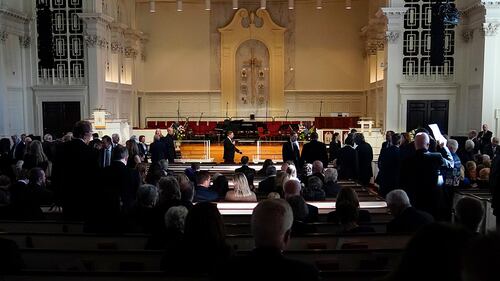 Rosalynn Carter remembered at tribute service Guests hold programs during a tribute service for former first lady Rosalynn Carter at Glenn Memorial Church at Emory University in Atlanta, Georgia, on November 28, 2023. (ANDREW CABALLERO-REYNOLDS/AFP via Getty Images)