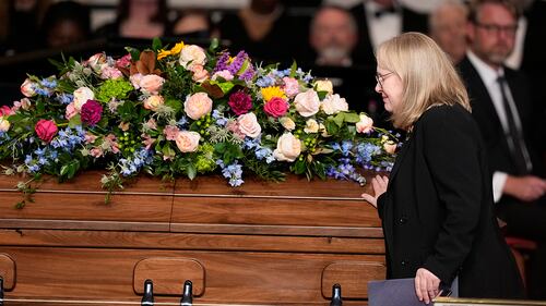 Rosalynn Carter remembered at tribute service Journalist Judy Woodruff pauses at the casket after speaking at a tribute service for former first lady Rosalynn Carter at Glenn Memorial United Methodist Church at Emory University on November 28, 2023 in Atlanta, Georgia. Rosalynn Carter, who passed away on November 19 at the age of 96, was married to former U.S. President Jimmy Carter for 77 years. In her lifetime she was an activist and writer known to be an advocate for the elderly, affordable housing, mental health, and the protection of monarch butterflies. President Joe Biden and every living first lady are expected to attend the service. (Pool/Getty Images)