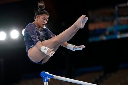 Photos: Sunisa Lee wins bronze in uneven bars final at Tokyo Olympics Sunisa Lee of the United States, performs on the uneven bars during the artistic gymnastics women's apparatus final at the 2020 Summer Olympics, Sunday, Aug. 1, 2021, in Tokyo, Japan. (AP Photo/Ashley Landis)