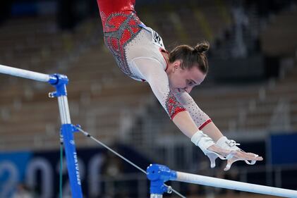 Photos: Sunisa Lee wins bronze in uneven bars final at Tokyo Olympics Anastasiia Iliankova of the Russian Olympic Committee, performs on the uneven bars during the artistic gymnastics women's apparatus final at the 2020 Summer Olympics, Sunday, Aug. 1, 2021, in Tokyo, Japan. (AP Photo/Ashley Landis)