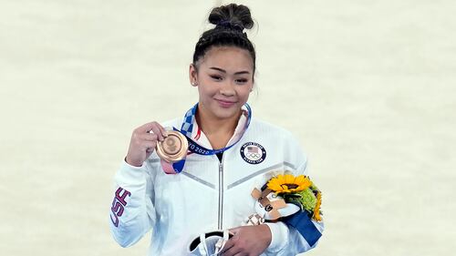 Photos: Sunisa Lee wins bronze in uneven bars final at Tokyo Olympics Sunisa Lee of the United States, poses after winning the bronze medal in the uneven bars during the artistic gymnastics women's apparatus final at the 2020 Summer Olympics, Sunday, Aug. 1, 2021, in Tokyo, Japan. (AP Photo/Gregory Bull)