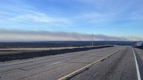 Texas scorched by massive wildfires Smoke rises on the roadway in Hutchinson County after the Juliet Pass fire broke out in Armstrong County, Texas, United States on February 28, 2024. (Photo by Texas A&M Forest Service/Anadolu via Getty Images) (Anadolu/Anadolu via Getty Images)