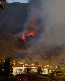Photos: Volcano on Spain's Canary Islands erupts, sparking mass evacuations Smoke rises at the Cumbre Viegja volcanic on the island of La Palma in the Canaries, Spain, Sunday, Sept. 19, 2021. (AP Photo/Jonathan Rodriguez)
