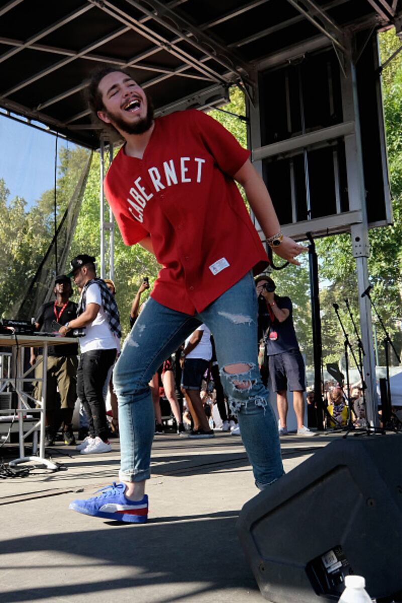 Photos: Post Malone through the years 2016: Post Malone performs on stage at the Coachella Republic Records Jaegermeister Party at Republic House on April 17, 2016, in Palm Springs, California. (Randy Shropshire/Getty Images for Universal Music)