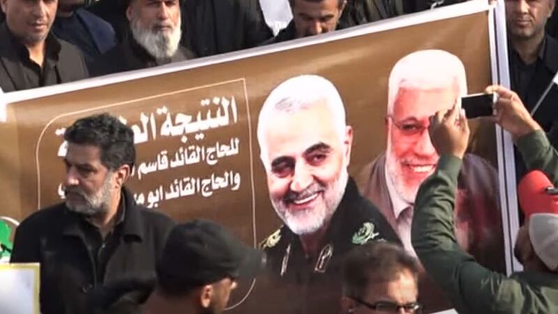 According to The Associated Press, the majority of mourners were men in black military fatigues carrying Iraqi flags and the flags of Iran-backed militias loyal to Soleimani. Chants of “America is the Great Satan” could also be heard.