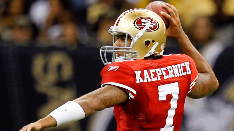 In this handout image provided by the NFL, Colin Kaepernick of the San Francisco 49ers poses for his NFL headshot circa 2011 in San Francisco, California. (Photo by NFL via Getty Images)