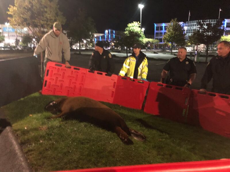 The Beverly Police Department shared what it termed “Breaking Shoebert news” on its Facebook page, saying the animal left Shoe Pond and made its way to the side door of the police station.
