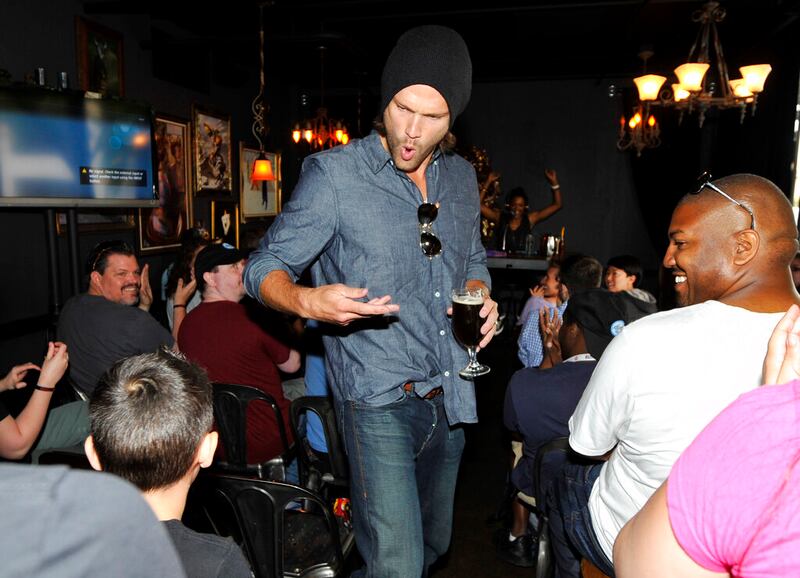Jared Padalecki IMAGE DISTRIBUTED FOR UBISOFT - Actor Jared Padalecki talks with a fan before an Aisha Tyler Podcast during a pod cast interview at the Ubisoft and Aisha Tyler Present the Girl on Guy Comic Con 2013 Players Lounge, Saturday, July 20, 2013. (Photo by PHOTOGRAPHER NAME/Invision for CLIENT NAME/AP Images) (Jack Dempsey/Invision for Ubisoft)