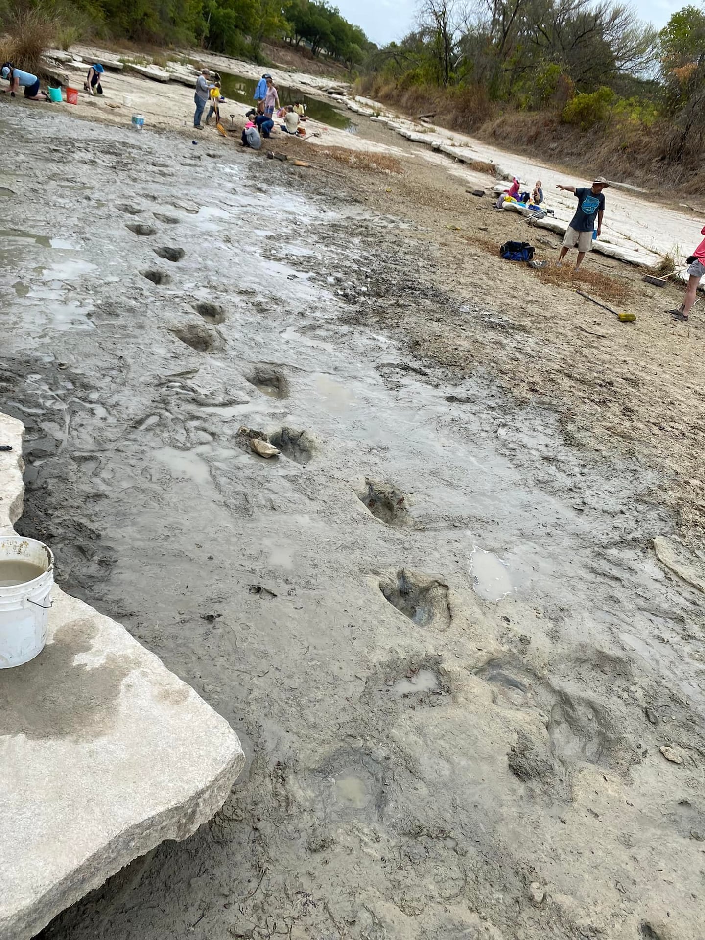 A video posted to Facebook shows the tracks in the riverbed as volunteers came out to carefully expose the prints and map out the tracks.