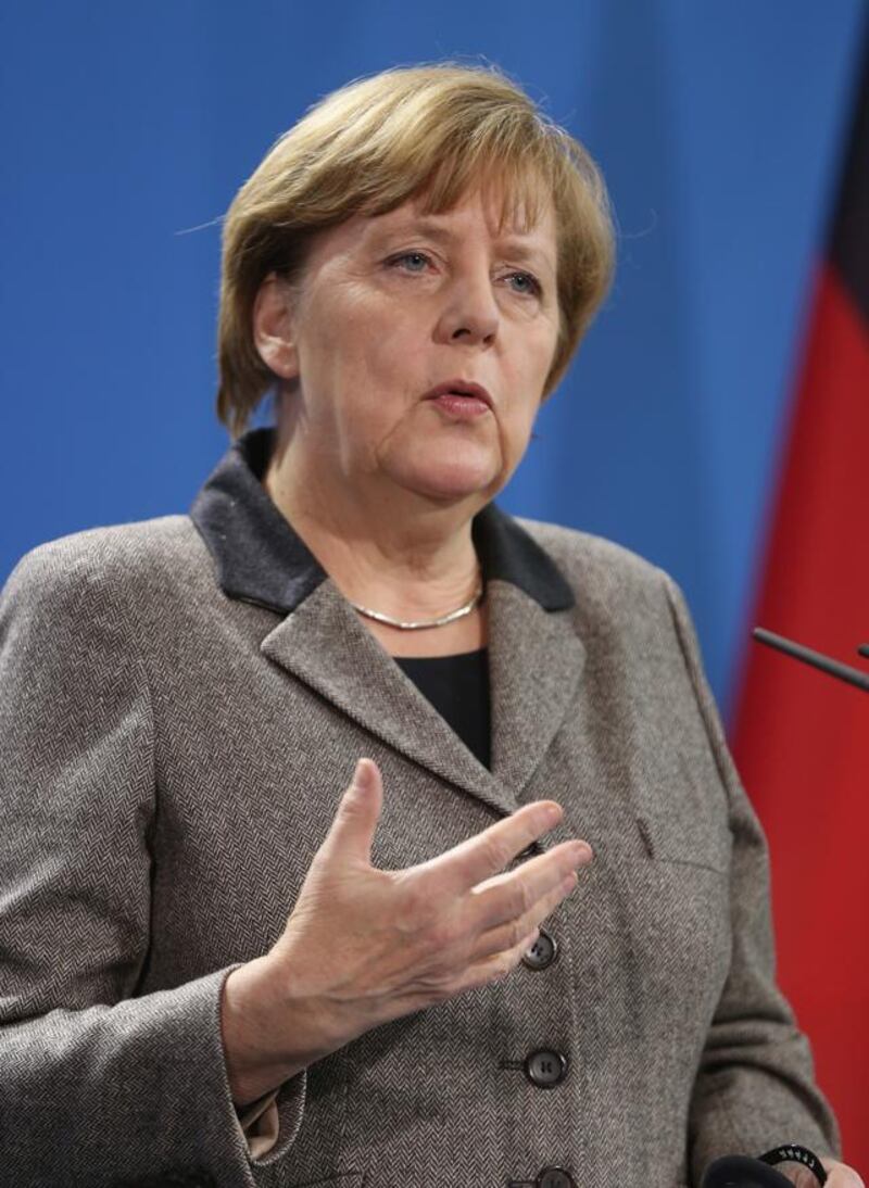 2015 2015 - German Chancellor Angela Merkel and Afghan President Ashraf Ghani (not pictured) speak to the media following talks at the Chancellery on December 2, 2015, in Berlin, Germany.