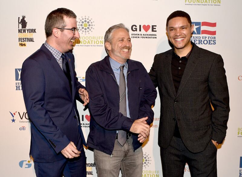 Through the years (L-R) John Oliver, Jon Stewart and Trevor Noah attend the 11th Annual Stand Up for Heroes Event presented by The New York Comedy Festival and The Bob Woodruff Foundation at The Theater at Madison Square Garden on November 7, 2017 in New York City. (Photo by Bryan Bedder/Getty Images for Bob Woodruff Foundation) (Bryan Bedder)