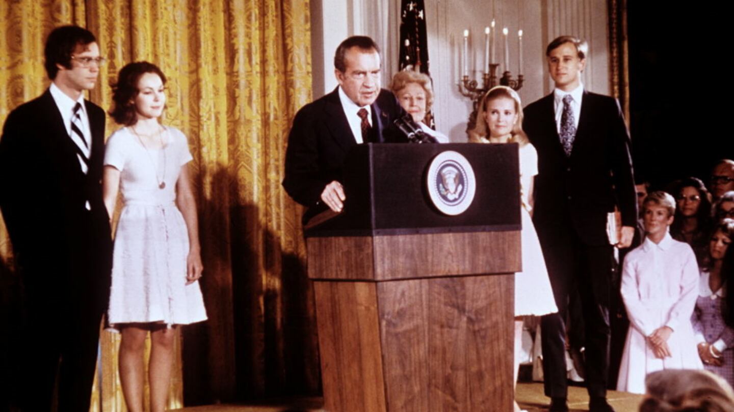 Nixon announced his resignation in a nationally televised speech to the nation on Aug. 8, 1974, and handed over the reins of power to Gerald R. Ford the next day.