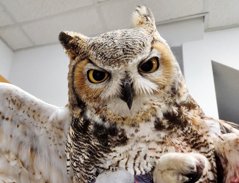 CPW officer Travis Sauder evaluated the bird, and determined the animal’s wing was injured but likely not broken. Sauder said he believes the owl was likely diving for prey when it was sucked under the grille of a pickup truck on Monday night.