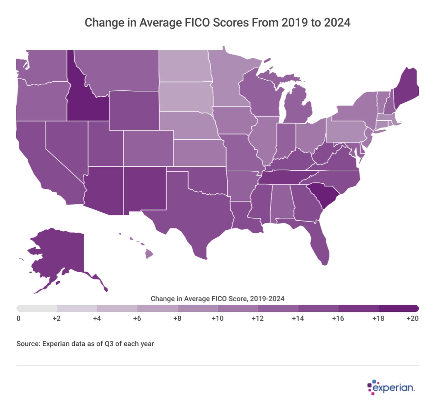 Nationwide, Experian noted no change in the average FICO Score, which held steady at 715 through the 12 months ending September 2024.