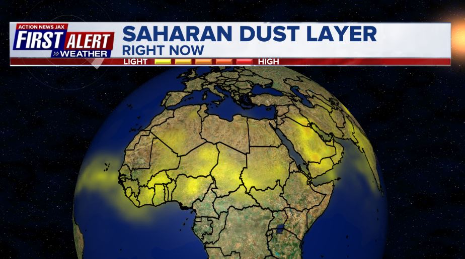* In itself, the dust is not typically harmful. But when the volume of the dust is especially dense, air quality can “suffer”. Such is not usually the case for NE Fl./SE Ga. because the SAL is typically “thinner” due to natural causes/mixing (wind, some of the particles have already fallen to the ground & much of the dust is at very high altitudes)