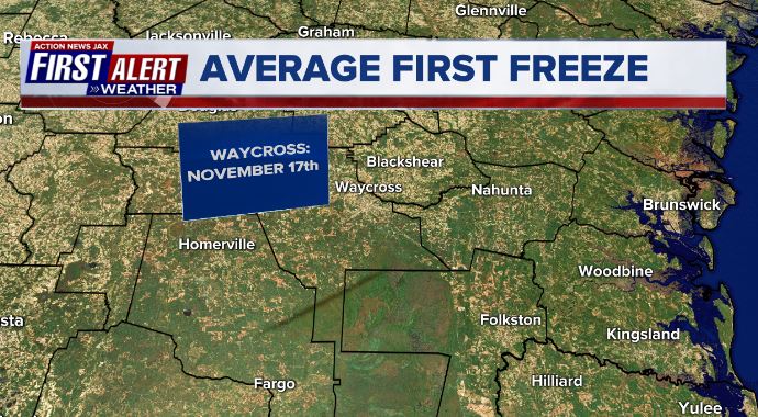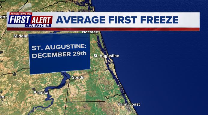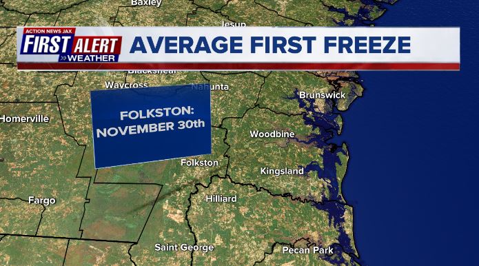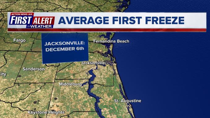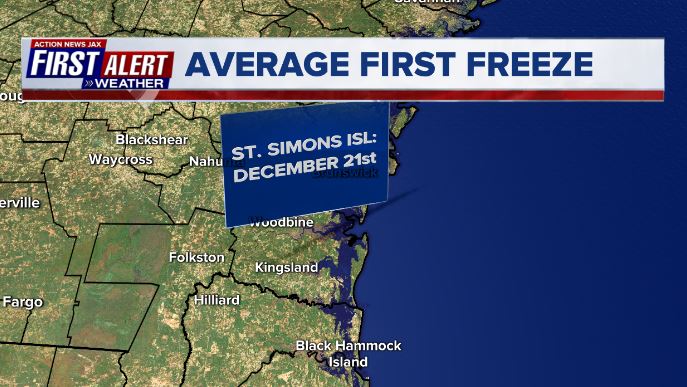 Jacksonville, FL — Winter seems to have arrived in NE Fl./SE Ga.! After a long stretch of warm weather recently..... & few freezes the last couple of winters, all inland areas had a freeze early Wed., Dec. 2nd with at least a frost - if not a freeze - all the way to some of the beaches. The temp. at JIA hit 28 degrees - the first time below 30 degrees in a record 1,047 days - an indication of just how mild the last couple of winters have been. The old record was 1,044 straight days 30+ degrees from Jan. 16, 1948 to Nov. 25, 1950. And it was only 4 days ahead of the avg. first freeze of the season at JIA. The avg. last freeze for most of NE Fl. is mid to late Feb... earlier at/near the coast... a little later - into March - for inland SE Ga. We really do need some cold weather to help with bugs & pollen & for the overall health of our eco system. JIA averages 15 freezes per winter... far less, of course, at & near the beaches. So ... the numbers: