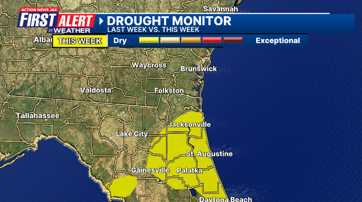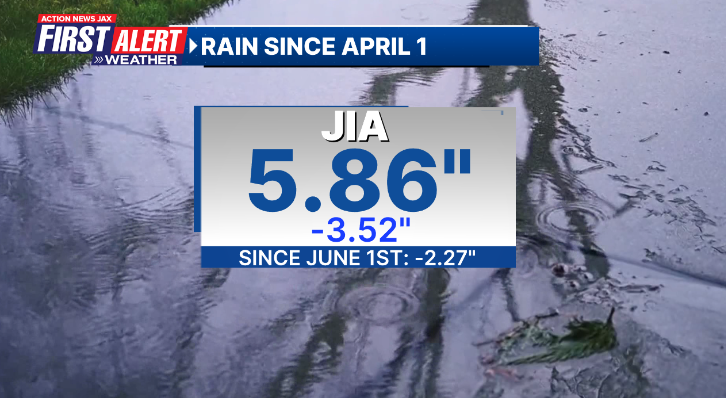 Another contributing factor related to how quickly grasses & landscaping have succumbed to the dry conditions is how wet our winter & early spring were. Jacksonville had its wettest Nov.-January on record above average rainfall continued through March. So plants & yards were flourishing with a healthy water table that was near the surface only to suddenly find it dry resulting in a quick decline once plants had to adjust to a lower water table. We are also at the peak of our longest days, so long sunny days results in a lot of evaporation.