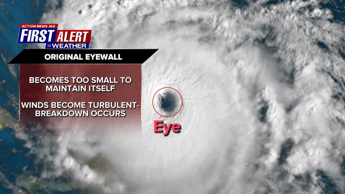 We saw at least two eyewall replacement cycles. This occurs when mature, strong hurricanes have an outer wall develop which cuts off the updrafts & moisture supply from the original (inner) eye. The hurricane weakens during this process until the replacement cycle is completed. Then - if all other conditions are favorable - the hurricane may again intensify.