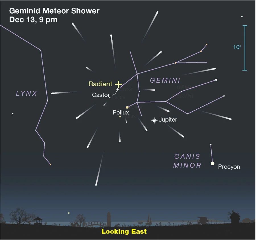 Dec. 13–14 (all night): The Geminid meteor shower is expected to peak. The waning crescent Moon shouldn’t interfere with viewing.
