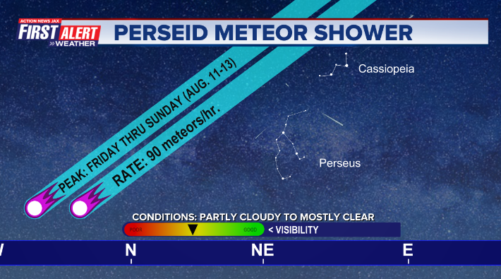 The Perseid meteor shower peaks through the weekend of Aug. 12-13th. The Perseid meteors can appear anywhere in the sky. But perspective makes them seem to stream away from the shower’s “radiant” point near the border of Perseus and Cassiopeia.