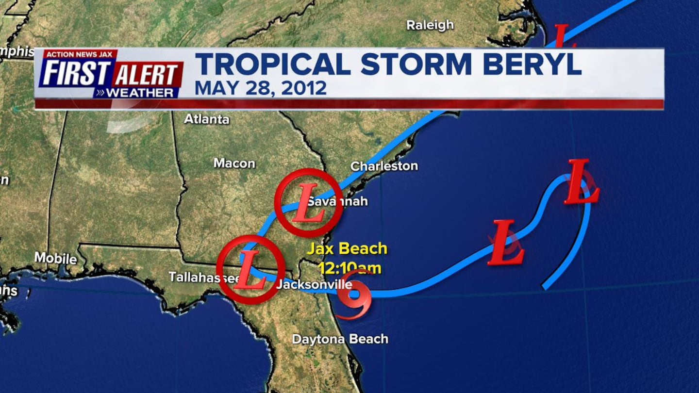 May 28 - May 28: Tropical storm “Beryl” landfall at Jacksonville Beach at 12:10am on Memorial Day - heavy rain & strong winds.