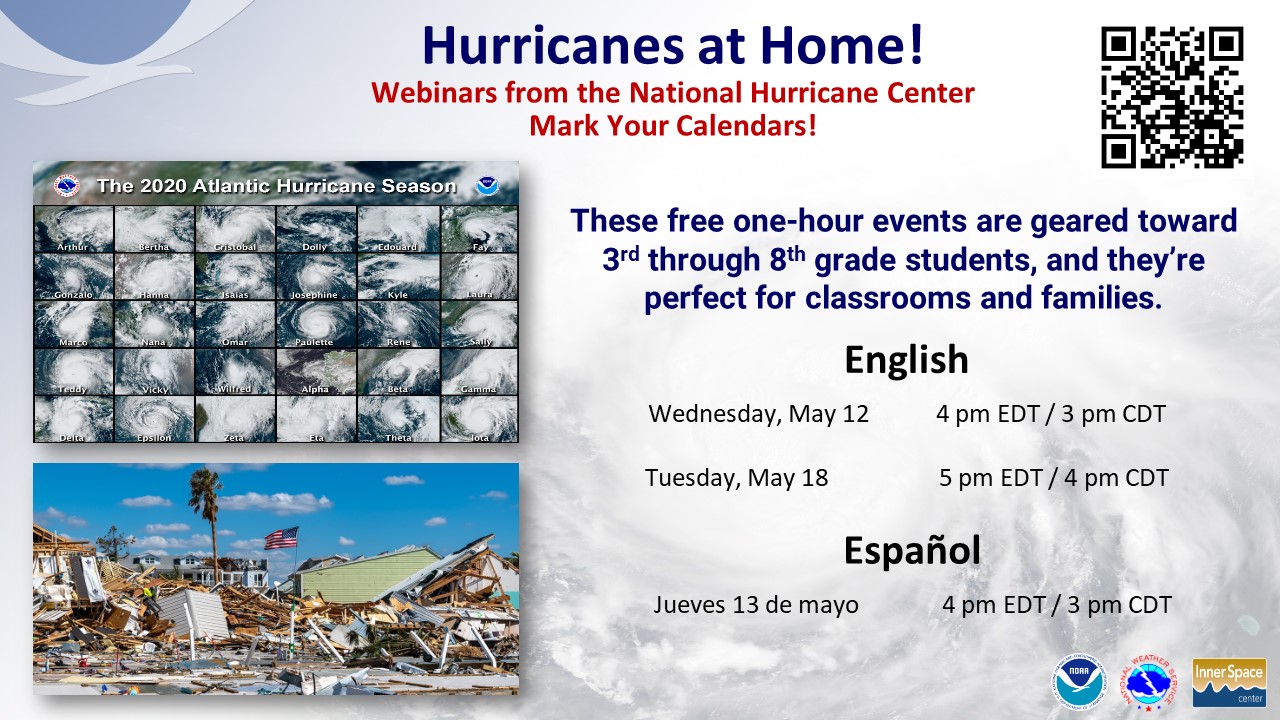 Future info on the #HurricanesAtHome webinars will be available on NHC’s social media accounts: